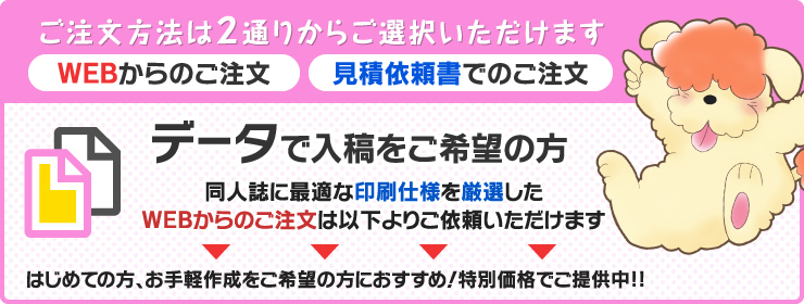 上記の仕様でカートに進む 入稿データは、ご注文後にMYページよりアップロード、または郵送、持参をお願いいたします。